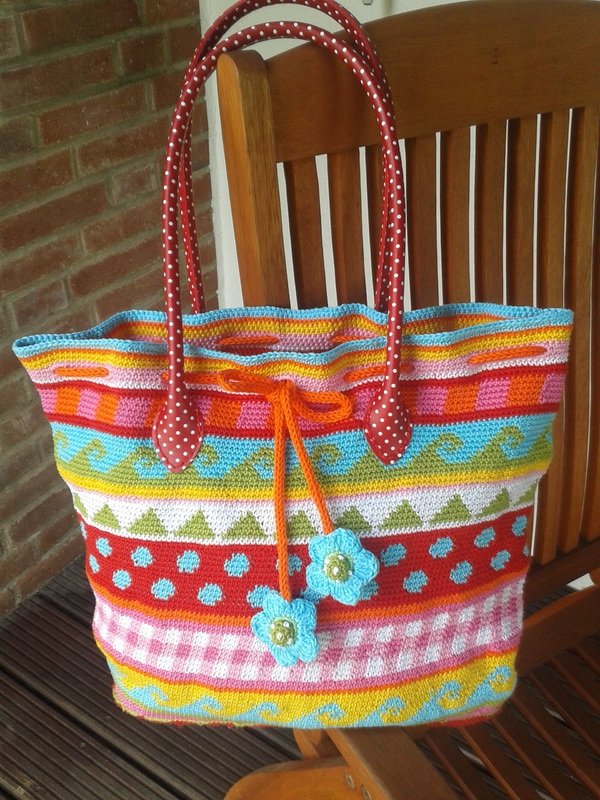 So eine gehäkelte Tasche in knalligen Farben macht einfach gute Laune. Schon beim häkeln bekommt man ein absolutes Sommerfeeling. Die macht bestimmt auch am Strand eine gute Figur.