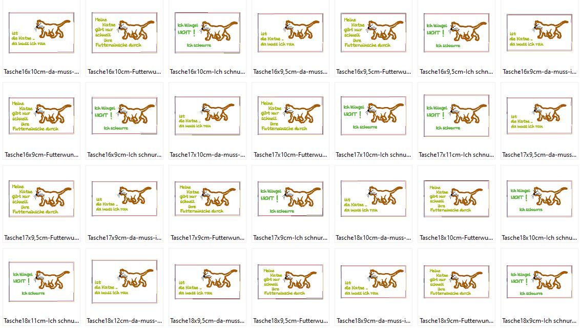 Stickdatei für Handytaschen in verschiedenen Größen mit süßem Kätzchen.