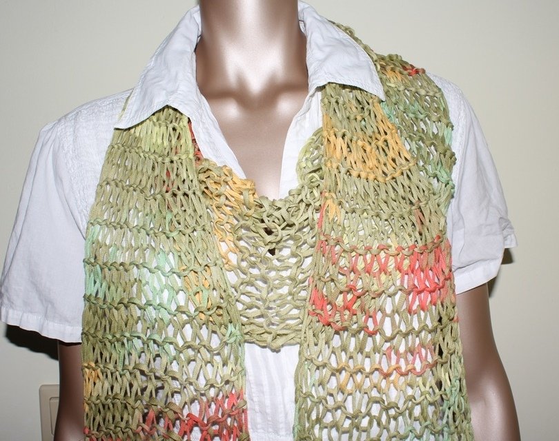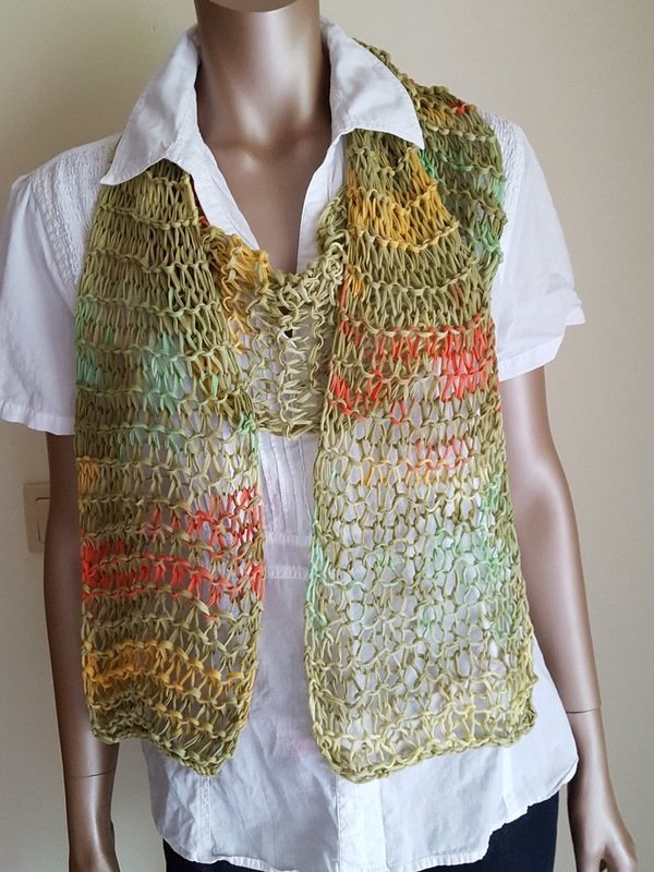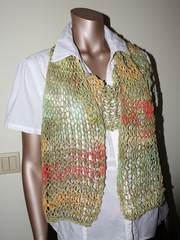 Strickanleitung luftiger Netzschal aus ca. 80 g Bändchengarn für Anfänger