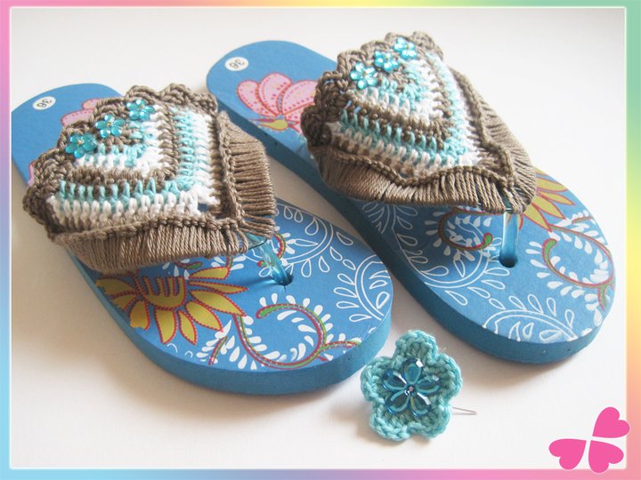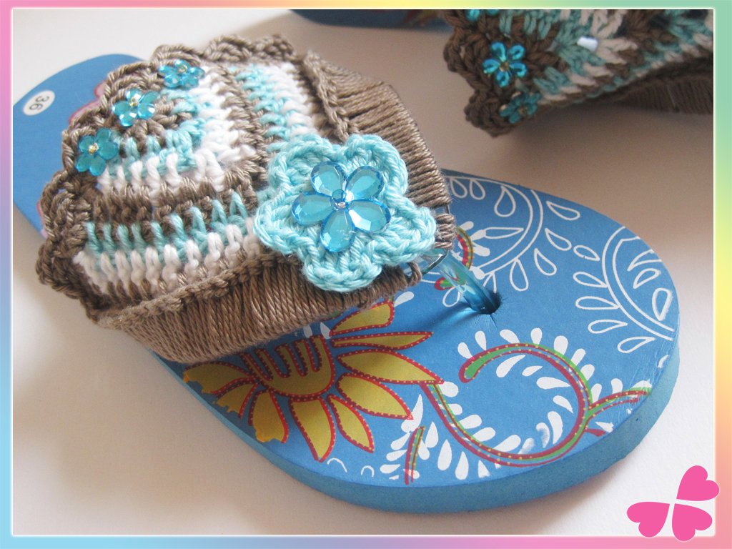 Gekauften Flip-Flops liebevoll umhäkeln und individuell gestalten: