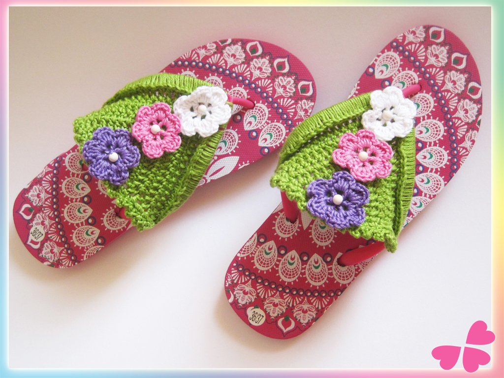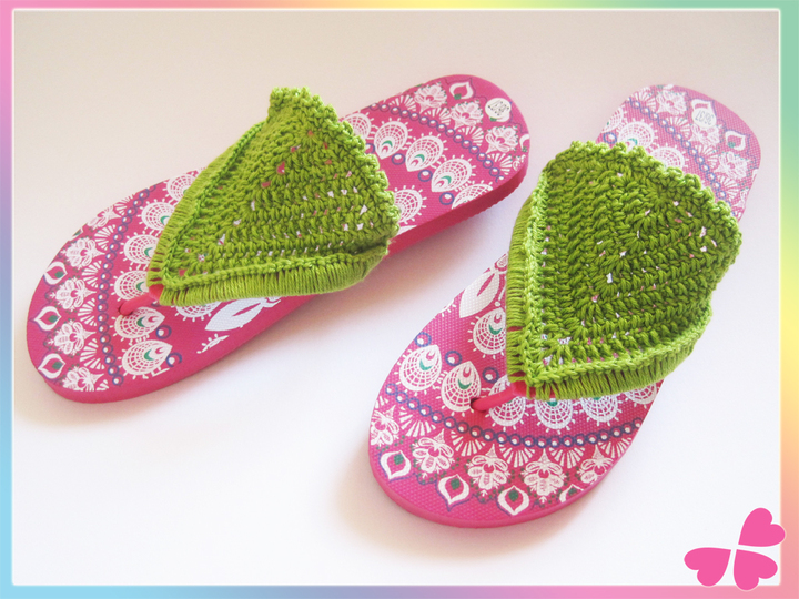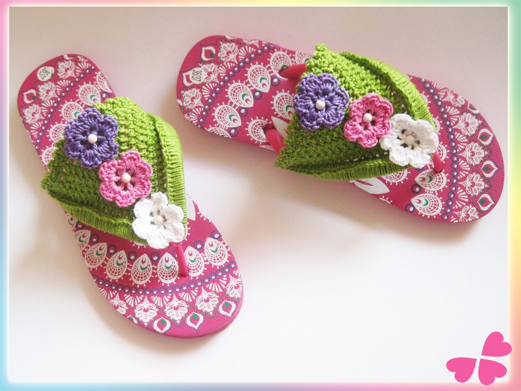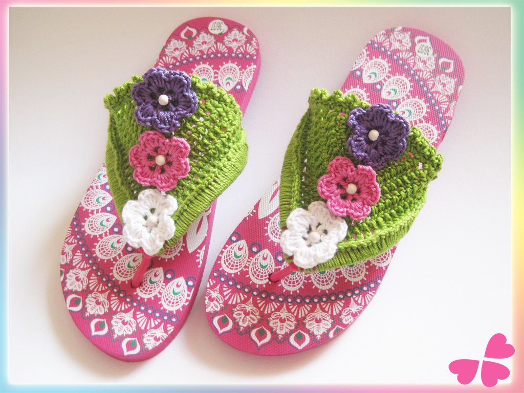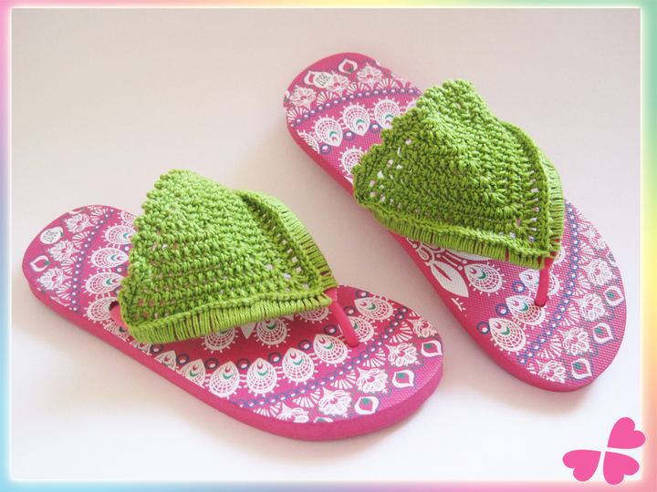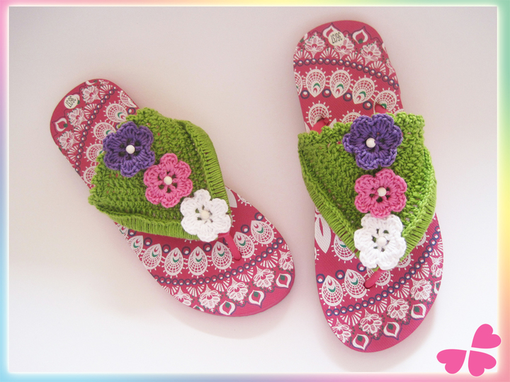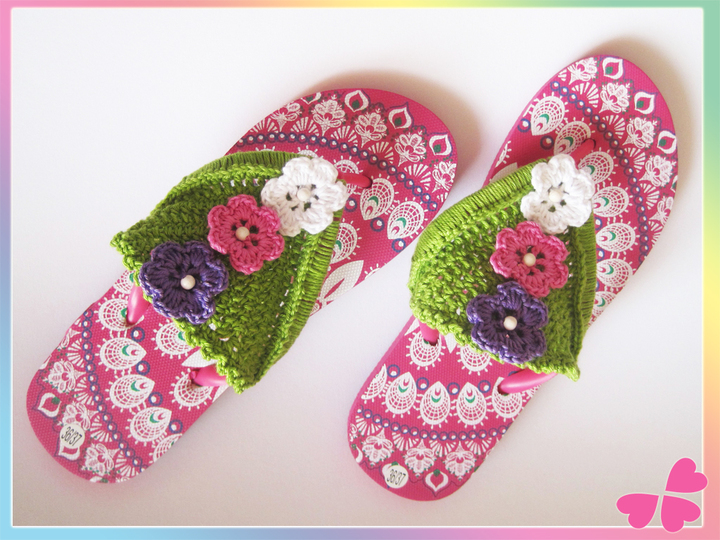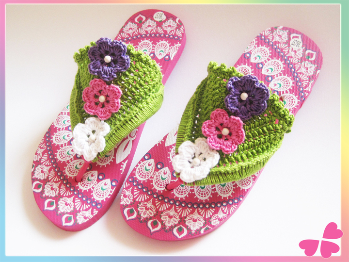 Selbst gehäkeltes Design für gekaufte Flip Flops