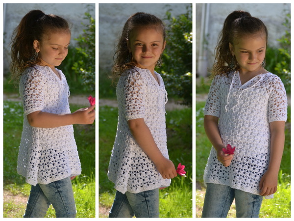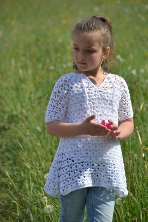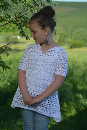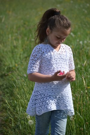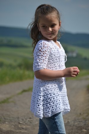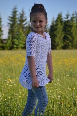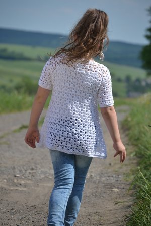 Die Zipfeltunika SINA ist ein tolles modisches Highlight für den Sommer. Ich habe dafür ein dünnes Baumwollgarn in weiß ausgesucht. Das Material ist schön leicht, angenehm zu tragen und weiß ist die perfekte Sommerfarbe und passt super zu gebräunter Haut.