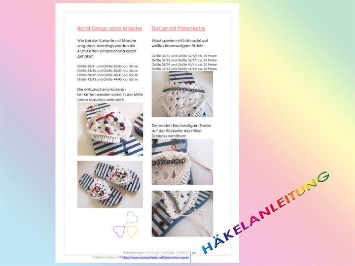 ♥ Die Anleitung eignet sich für Flip Flops in den Größen 30/31, 32/33, 34/35, 36/37, 38/39, 40/41, 42/43, 44/45.