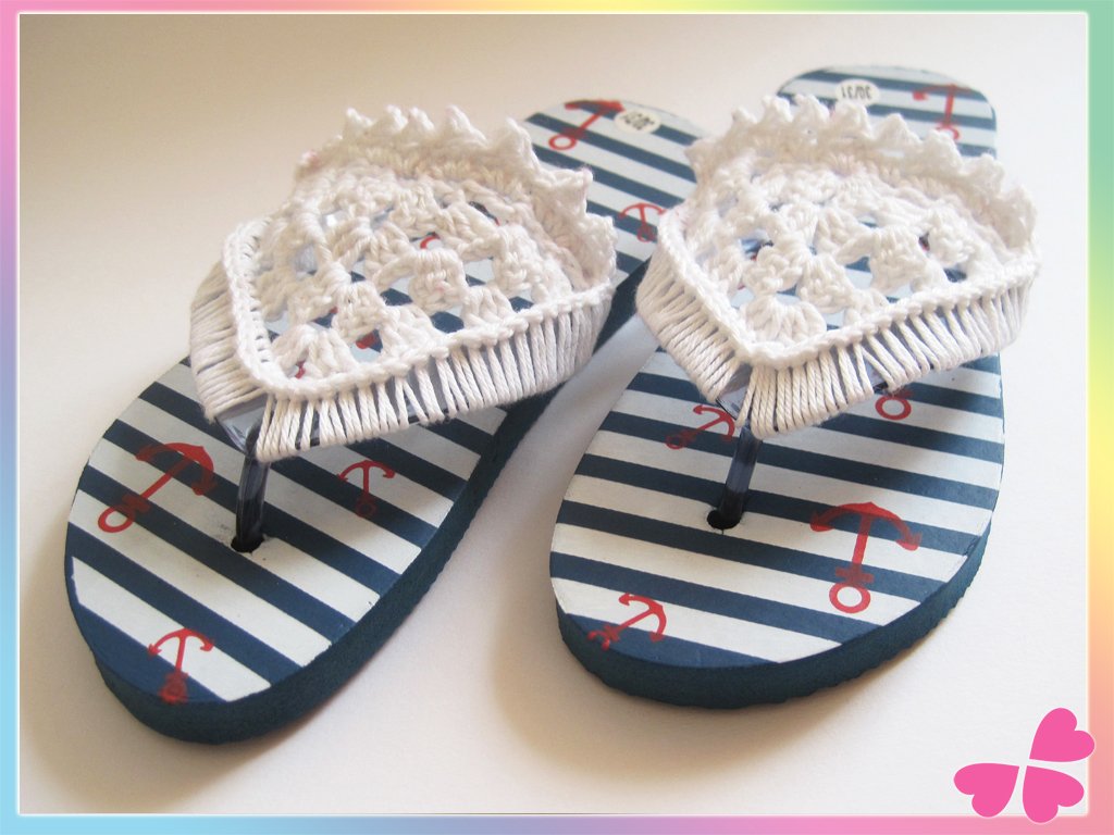 Mit dieser Häkelanleitung zeige ich Dir, wie Du Deine gekauften Flip Flops liebevoll umhäkeln und individuell gestalten kannst.