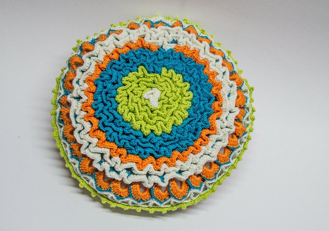 Die einzelne Kissenplatte läßt sich auch gern in anderen Bereichen verwenden: als Topfuntersetzer, Sitzunterlage, Topflappen (in kleinerer Größe) usw.