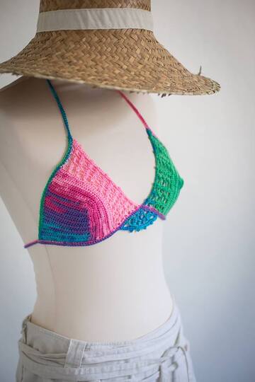 Lust auf Sonne, Wind und Meeresrauschen? Dann ist dieses Bikinioberteil im Batiklook genau das Richtige!...aber färben müsst ihr dafür nicht, häkelt es einfach aus tollen Farbverlaufs-Baumwollgarn, die es in vielen faszinierenden Farbspielen gibt.
