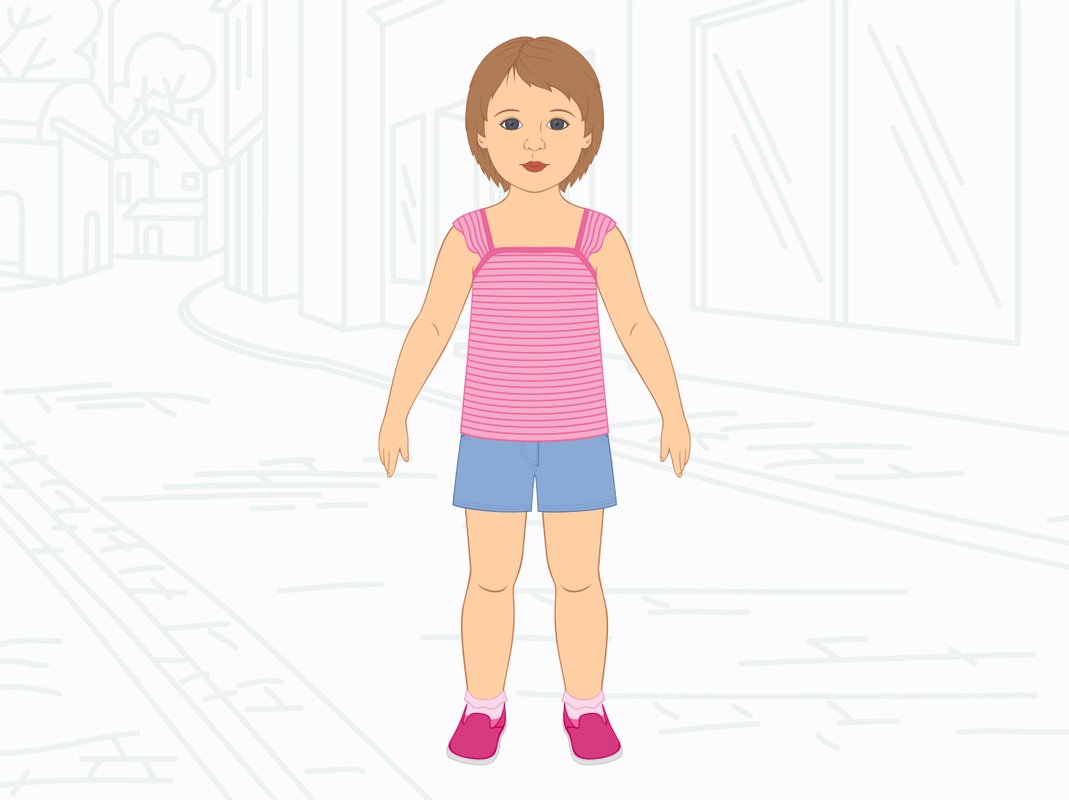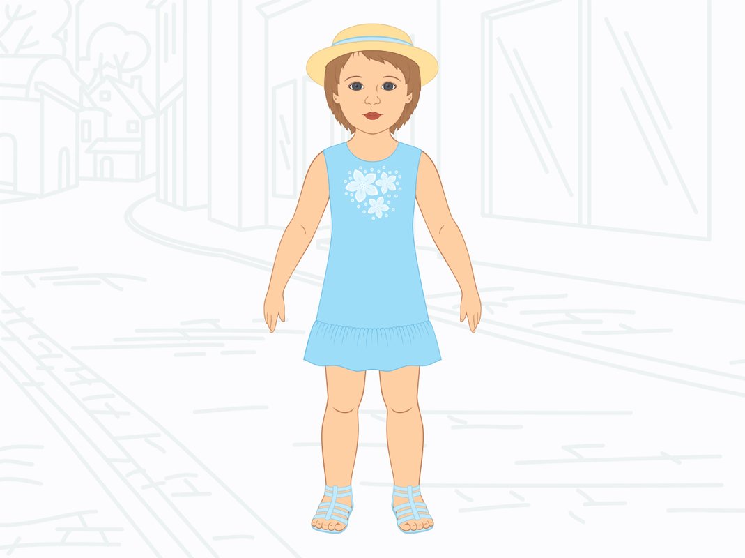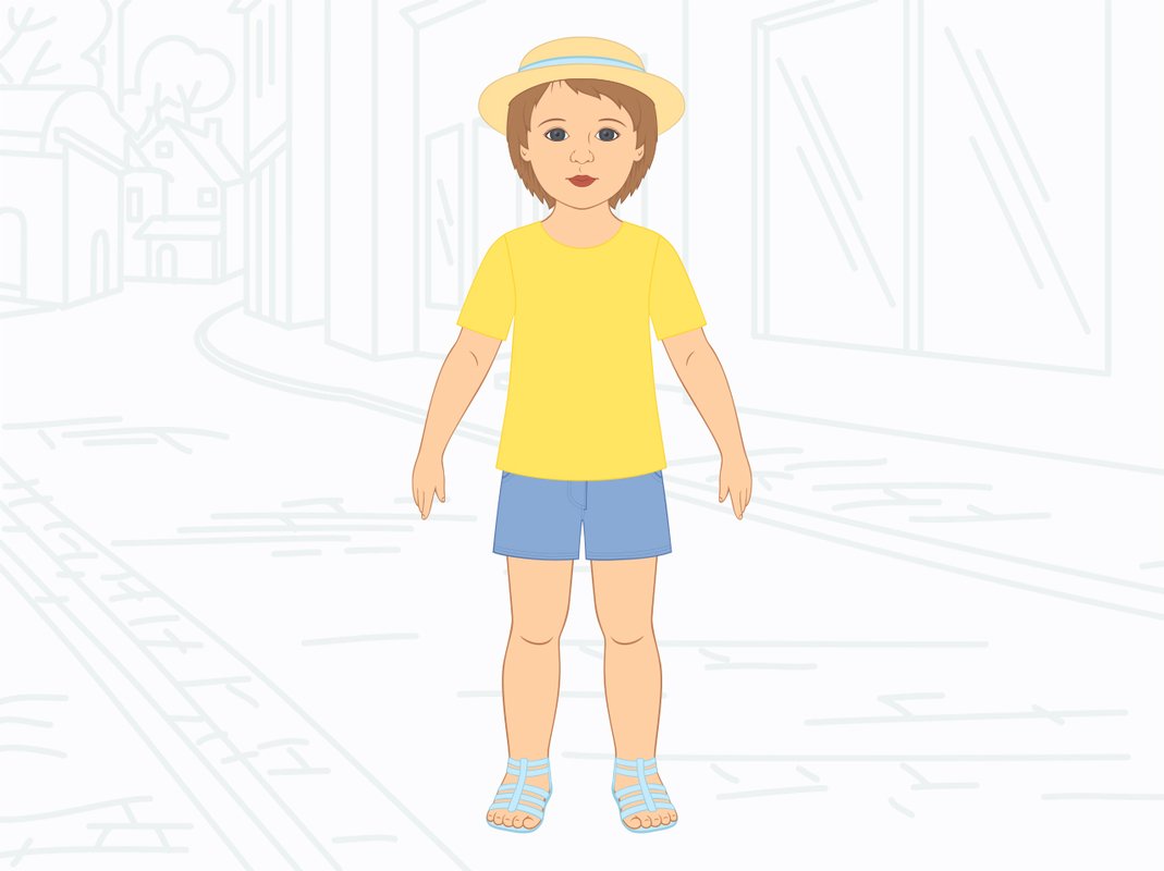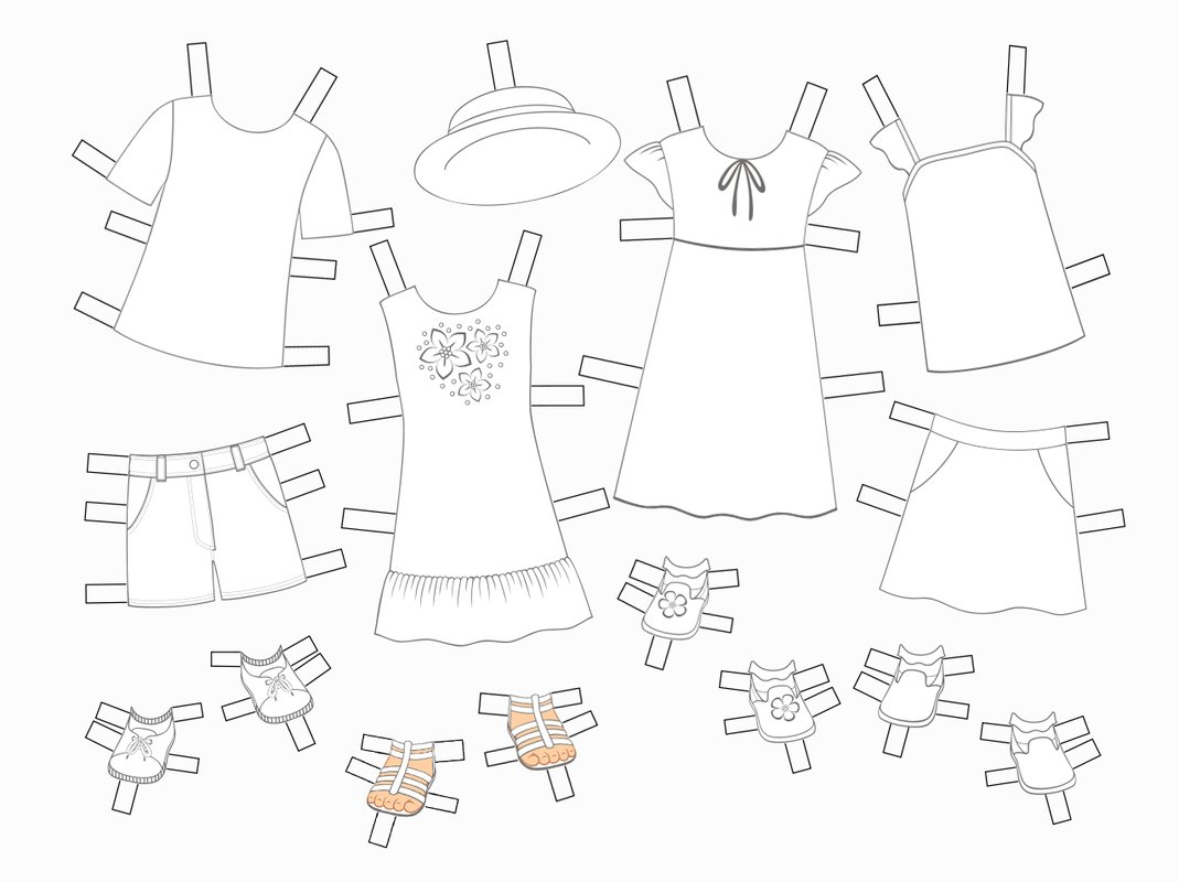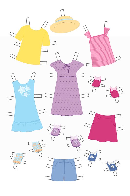 Beim Ausflug ins Stadtzentrum an einem heißen Sommertag braucht ein Papierpuppenmädchen passende leichte Kleidung. Diese vier Outfits sind dafür gut geeignet und einige Einzelteile lassen sich sogar zu weiteren Outfits kombinieren.