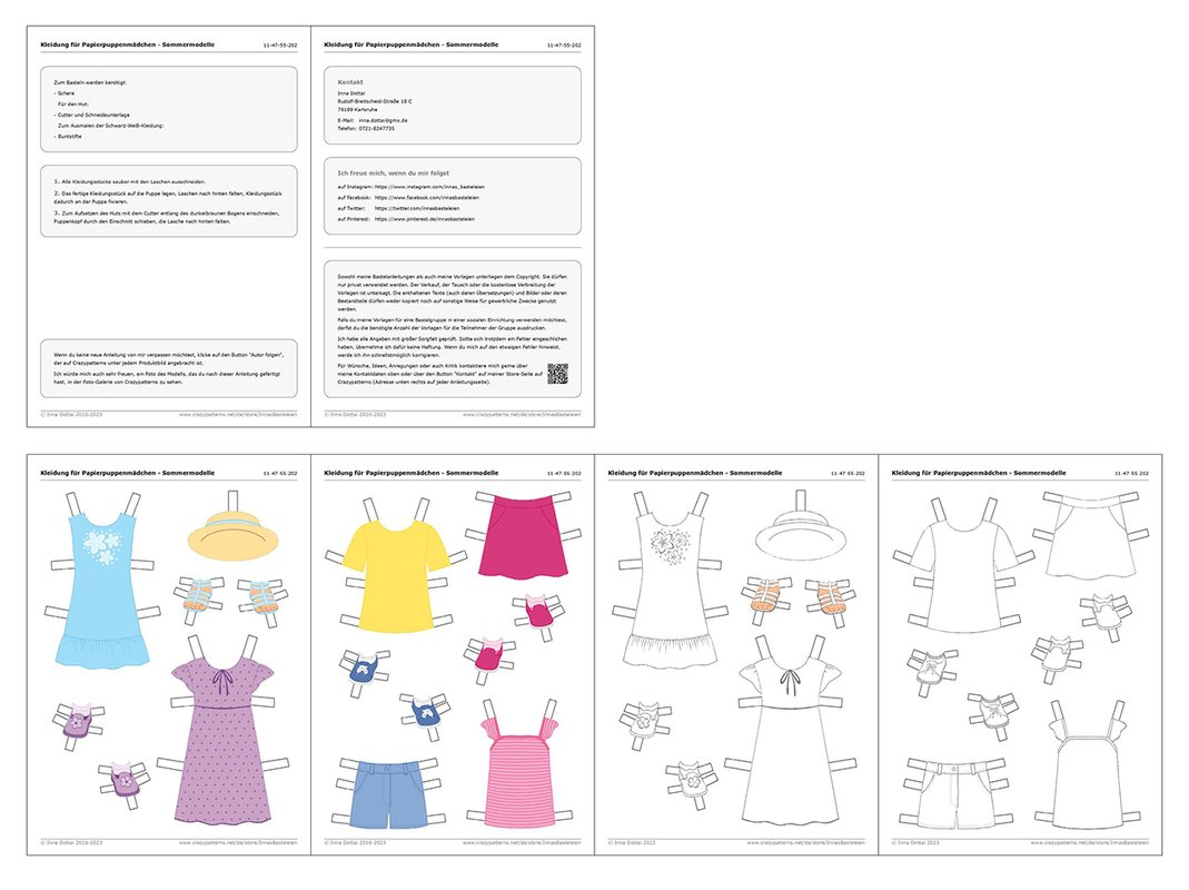 Der Download enthält zwei PDF-Dateien: die Anleitung und die Druckvorlage für die Kleidungstücke in fertig kolorierter Version sowie in Konturenversion.