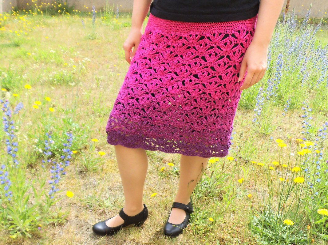 Mit diesem Rock, in einem traumhaften Wellenmuster gehalten, kannst du in jedem Sommer glänzen. Natürlich ist er auch geeignet für kühlere Jahreszeiten, einfach mit einer Leggins drunter getragen.