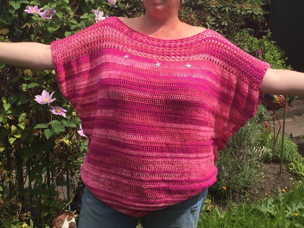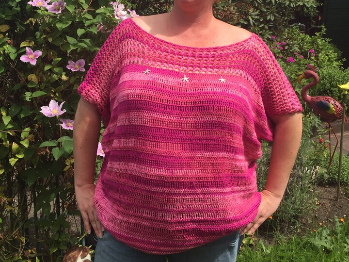 Ihr benötigt für den Damen Pulli ca. 570 Gramm Wolle . Ich habe Tahiti Batik von Gründl (1 Knäul = 100g)benutzt und sie mit einer 4,5er Nadel gehäkelt. Ihr könnt aber jede beliebige Wolle nutzen, da der Pulli für alle Größen anpassbar ist. Weiterhin benötigt Ihr eine handvoll Maschenmarker zum befestigen der Teile beim Vernähen bzw. Zusammenhäkeln.