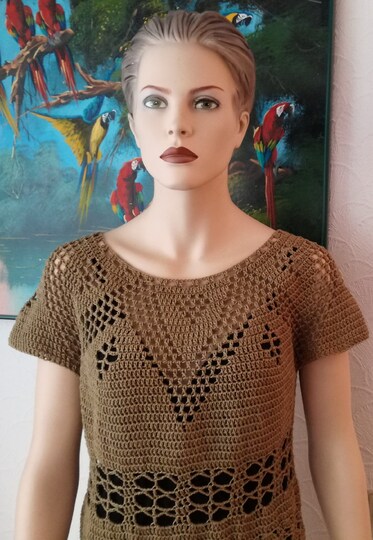 Dieses Longshirt / Tunika ist ein echter Hingucker – ganz gleich ob unifarben oder mit Farbverlauf. Luftig und elegant zugleich! In deinen Lieblingsfarben kreierst du dir ein ganz besonderes Einzelstück ... dieses Teil passt einfach immer für Frühling und Sommer. Das Sommershirt wird von oben nach unten in Runden gehäkelt damit entfällt das spätere Zusammennähen..