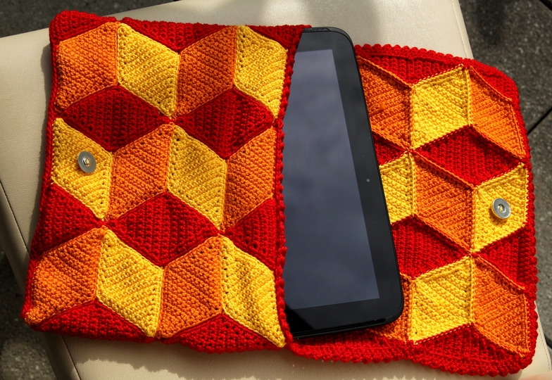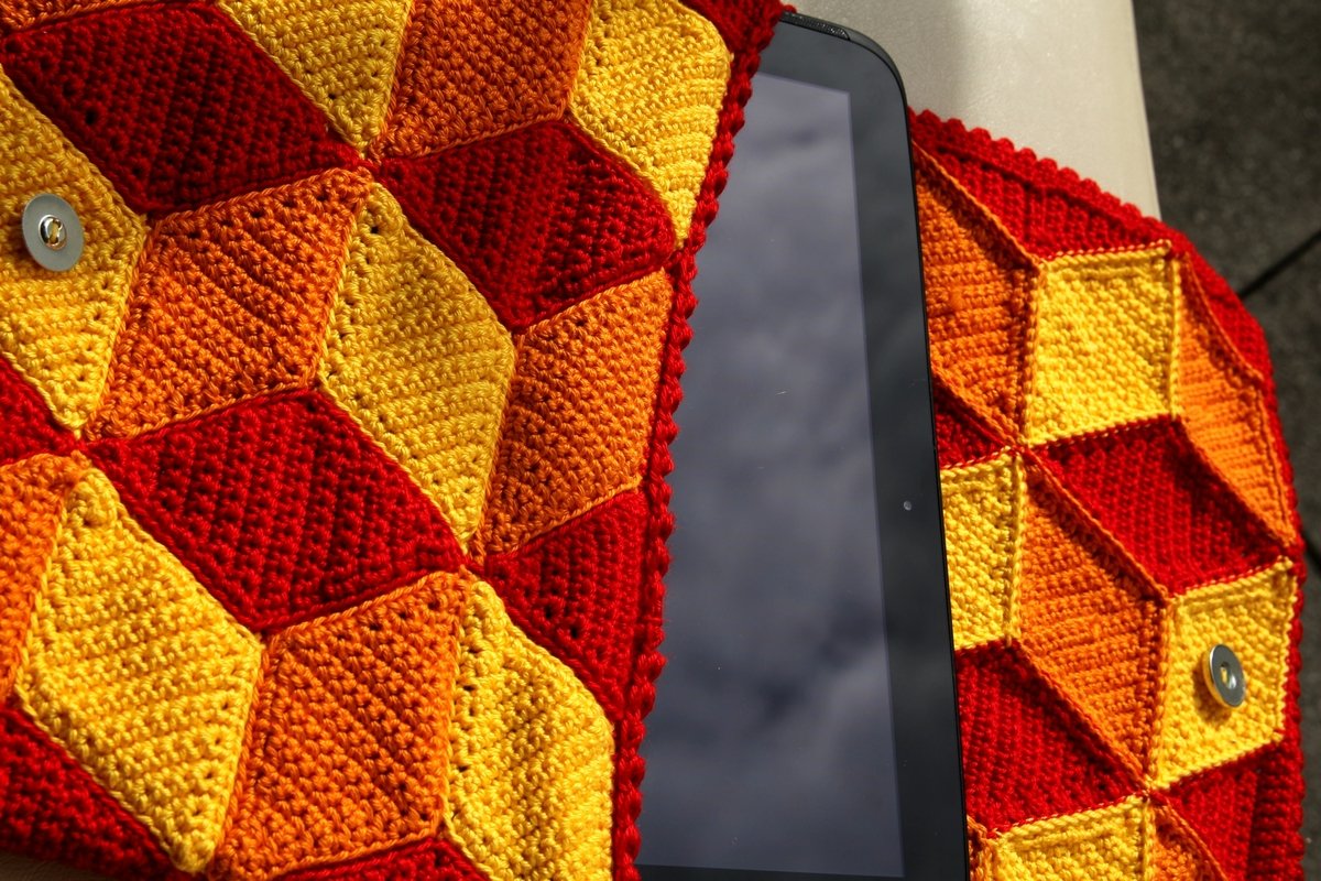 Häkelanleitung Tablettasche mit Würfelmuster (3D-Optik!!) (kein fertiges Produkt!)