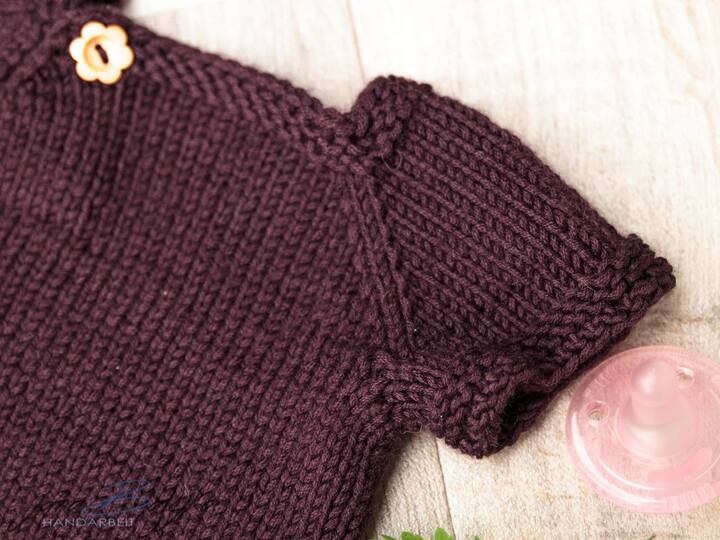 Der Babybody wird im Raglan-Stil von oben nach unten gestrickt und ist für fortgeschrittene StrickerInnen und Profis geeignet, die verkürzte Reihen und Raglan schon einmal gearbeitet haben oder sich zutrauen, dies an einem einfachen Modell ohne schwierige Muster zu erproben.