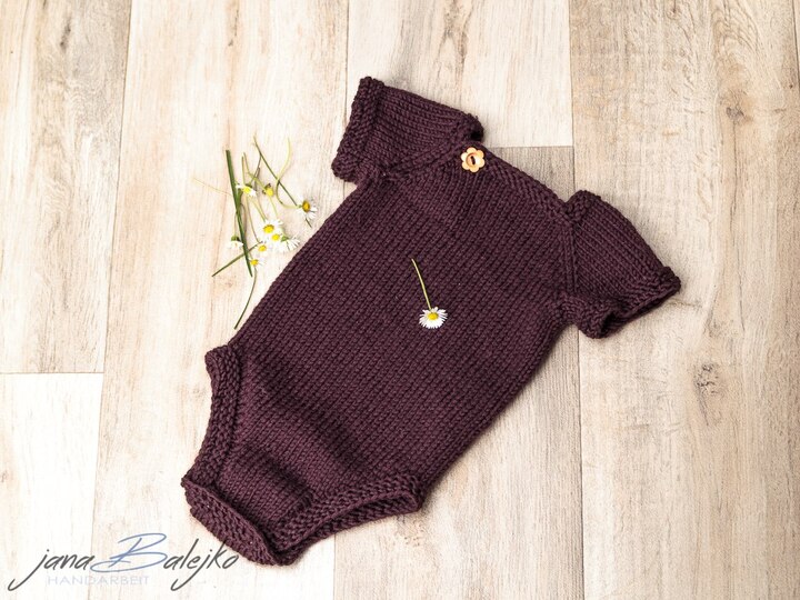 Dieser süße Babybody wird aus relativ dickem Garn gestrickt und ist dementsprechend schnell fertig. Aus Baumwolle oder Wolle-Seide gearbeitet, kann er direkt auf der Haut getragen werden und ist im Sommer die erste Wahl. Knöpfe am Halsausschnitt und im Schritt ermöglichen leichtes An- und Ausziehen.