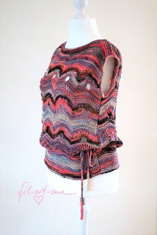 Bei Tunika LINNEA geben sich Bändchengarn, Wellenmuster und Fallmaschen ein lockeres Stelldichein und zaubern im Gesamtbild eine lässig-legere Tunika, die im Sommer viel Luft durchlässt! Gerade geschnitten und abhängig von den Körpermaßen leicht bis mäßig oversized, ist sie ein ideales Teilchen einfach mal zum schnellen Überwerfen über den Badeanzug oder Bikini - oder zur Hose oder Leggings - oder auch mal schick mit Gürtel oder Bindekordel gebändigt! Die Tunika kann auch ganz einfach zur Long-Tunika oder zum Minikleid verlängert werden.... Also alles in allem ein tolles Sommerteil, das in keinem Koffer fehlen darf! Das Muster ist sowohl als Strickschrift (Chart) vorhanden, als auch schriftlich ausgeführt.