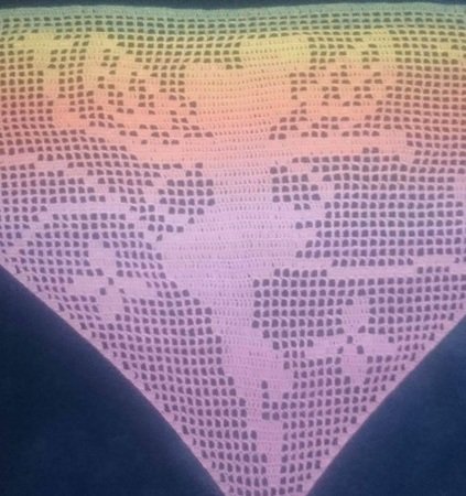 Gehäkelt wird von unten nach oben. Benötigt werden Grundkenntnisse beim Häkeln von Luftmaschen, Stäbchen und Doppelstäbchen. Das Motivtuch wurde mit einem dreifädigen Farbverlaufsgarn gehäkelt. Verwendet wurden ca. 500 Meter. Damit hat das Tuch eine Größe von etwa 140x62 cm.