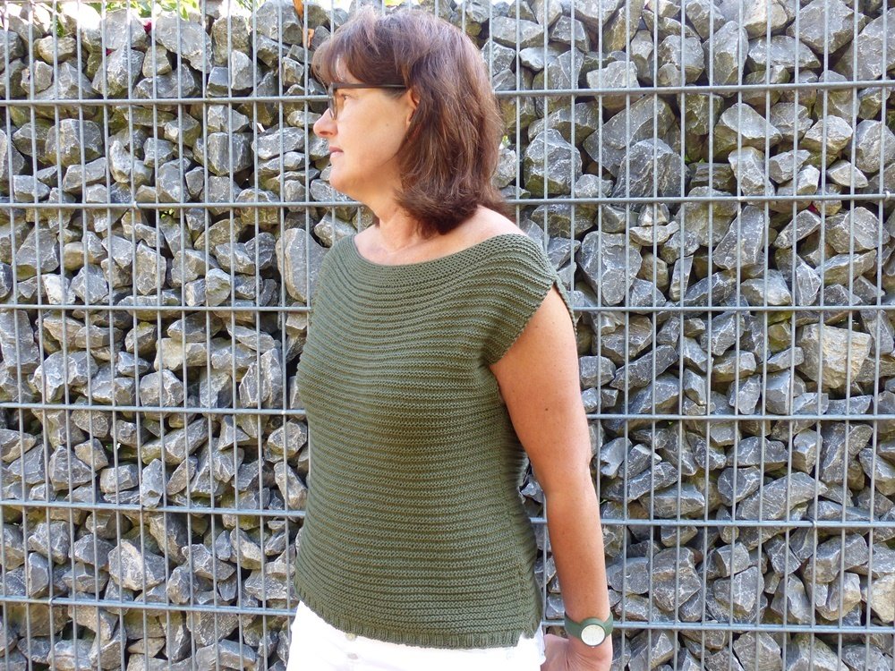 Dieses Top kann mit jedem beliebigen Garn und der passenden Nadelstärke nachgestrickt werden, so dass es schnell zu deinem Lieblingssommertop wird.