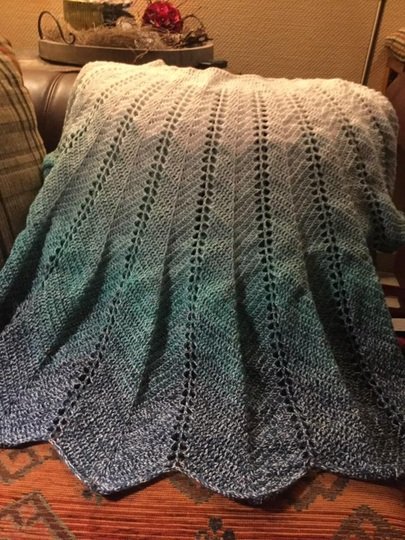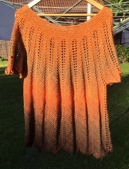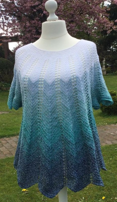 Gearbeitet habe ich mit meinem eigenen Farbverlaufsgarn, was aber auch mit anderen Wollsorten nachgearbeitet werden kann.
