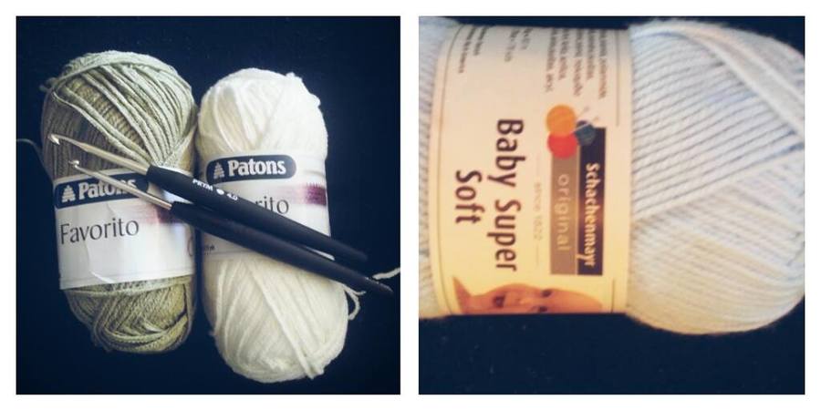 Und nicht zu vergessen Nadel und Faden /sowie Häkelnadelgröße 4 und 3