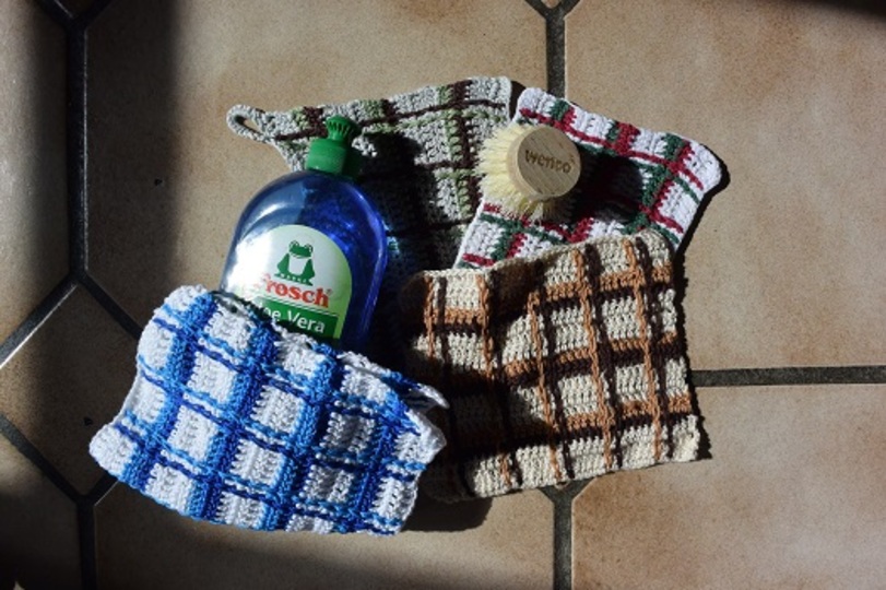 Hinweis: Beim vorgestellten Produkt handelt es sich NICHT fertige Spülis, sondern um eine Schritt-für-Schritt-Häkel-Anleitung, die Dir hilft, eigene Spülis zu fertigen.