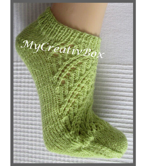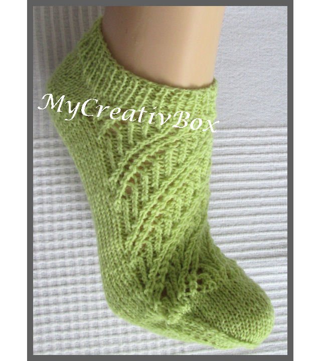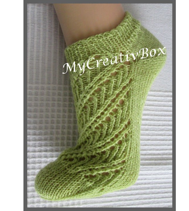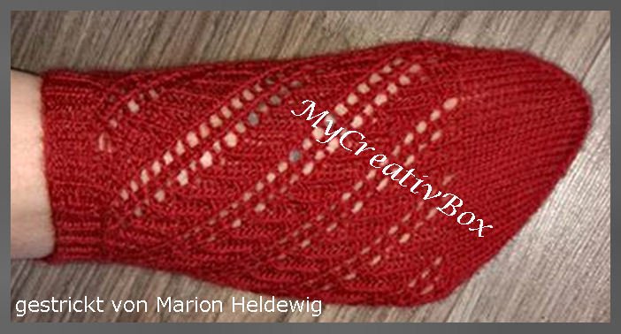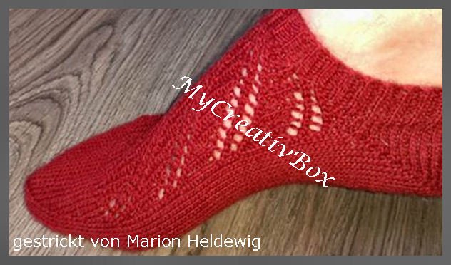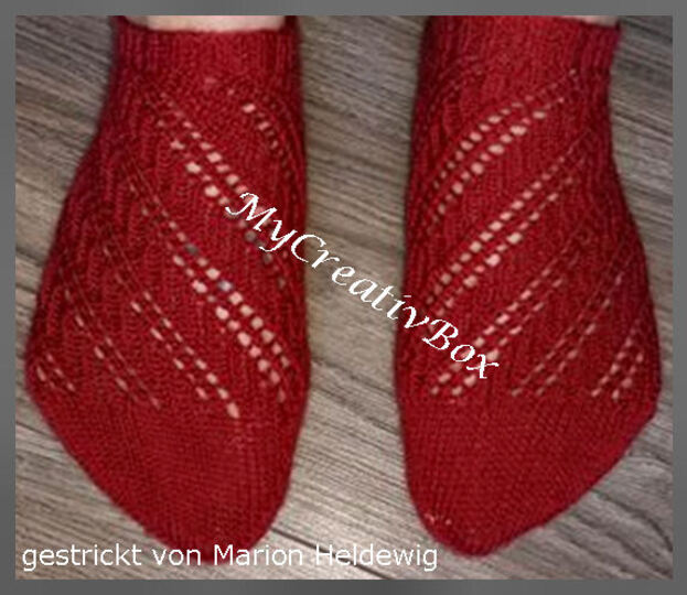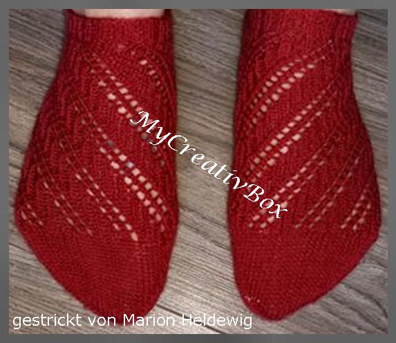 In der Anleitung werden Ferse und Spitze nicht näher erläutert; diese werden in gewohnter Arbeitsweise gestrickt.