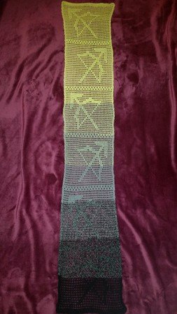 Gehäkelt wird von unten nach oben. Benötigt werden Grundkenntnisse beim Häkeln von Luftmaschen und Stäbchen. Der Schal wurde mit einem dreifädigen Farbverlaufsgarn gehäkelt. Verwendet wurden ca. 650 Meter. Maße bei 6 Mustersätzen 163 cm x 27 cm. Man kann den Schal aber in der Länge individuell anpassen indem man weniger oder mehr Mustersätze häkelt.