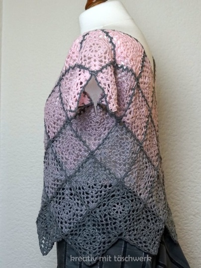 Dieser Sommerpullover wird aus Grannys gehäkelt, die später mit einen