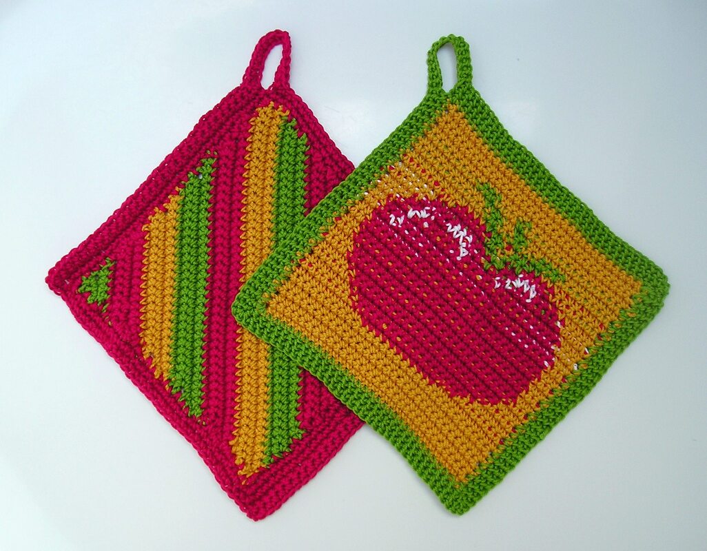 Die fertig gehäkelten Topflappen finden Sie unter https://www.freeminute.net/de/items/1112/topflappenset-tomate-handgehaekelt
