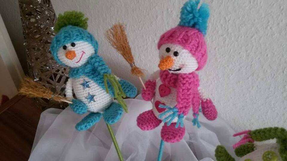 * Hiermit verschönert man im Winter jeden Blumentopf. Die niedlichen Blumenstecker sind Ruck Zuck gehäkelt und auch für Anfänger geeignet. Auch als kleines Geschenk bei einer Weihnachtsfeier macht dieser freche kleine eine riesen Freude