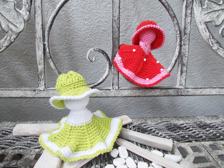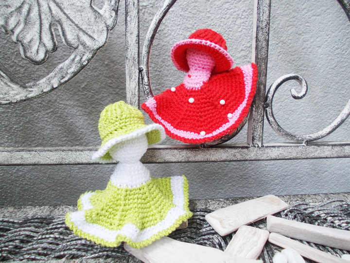 Mit Häkenadel 2,5 - 3 aus 100 % Baumwolle (auf 50 g eine LL von 120 m oder mehr) häkeln wir diese süße Puppe mit einem extrem schicken Hut mit breiter Krempe, welche gebogen werden kann. Ich habe Garn mit einer LL von 170 m auf 50 g verwendet ("Cotton 8" von G-B GmbH), siehe meine Empfehlung in der Anleitung.