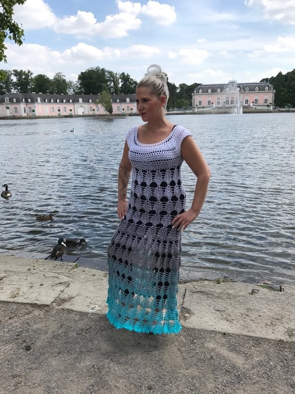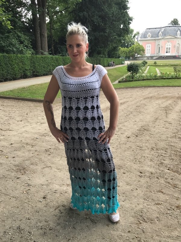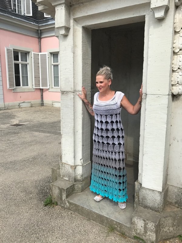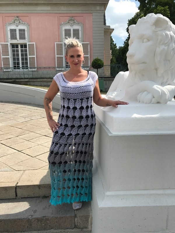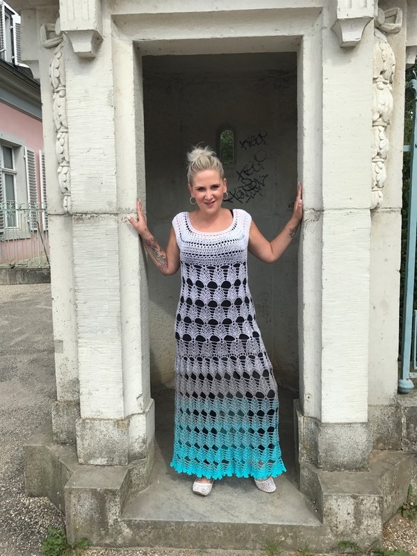 könnte man das Kleid in dem Muster wie es oben anfängt weiter häkeln und als mini Kleid machen? falls ja wieviel Meter bräuchte ich da für Größe 36/38?