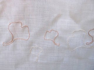Dinge aufhübschen: Taschen, Klamotten, Kulturtaschen, Kissen, Tischsets, Tischläufer, der Phantasie sind keine Grenzen gesetzt, selbst in der gleichen Farbe wie der Untergrund gestickt, setzen sie tolle Akzente.