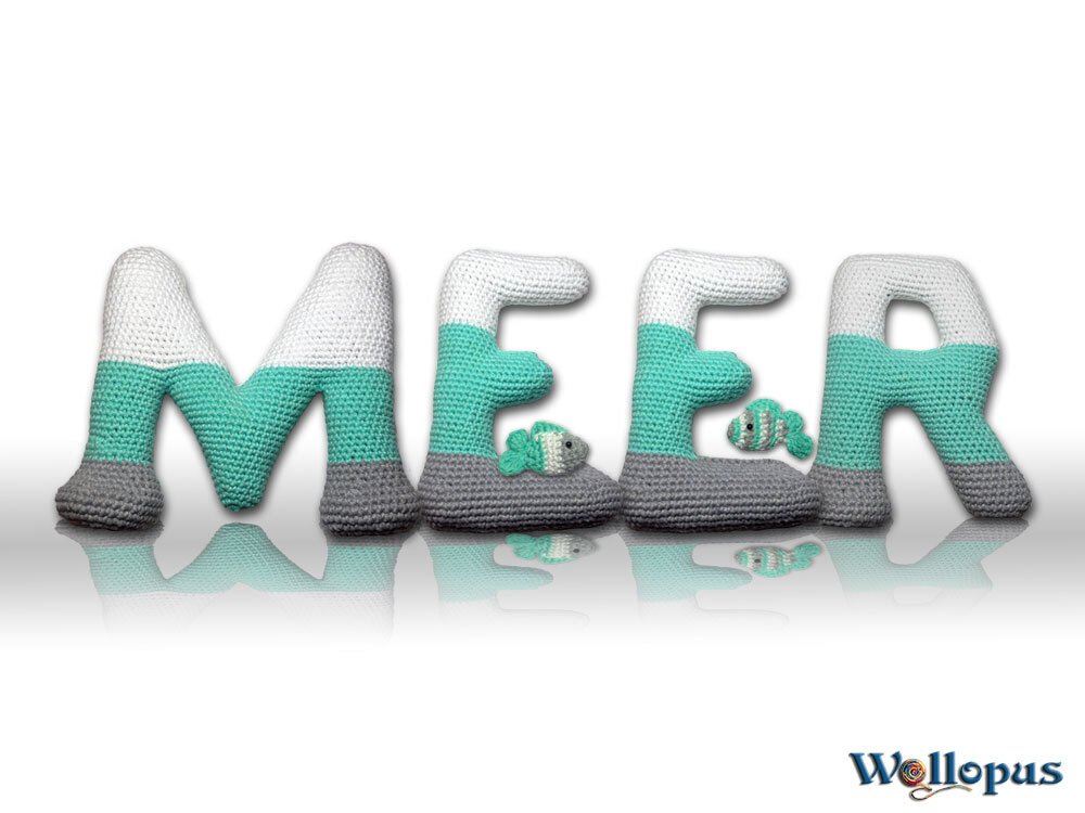 3 Anleitungen der Buchstaben „M“, „E“ und „R“, als Bonus kleine Fische.