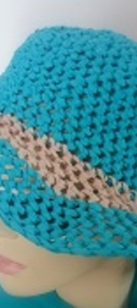 Auf der Banderole ist eine 9er Häkelnadel angegeben, der Hut wurde mit einer 8er Häkelnadel gearbeitet