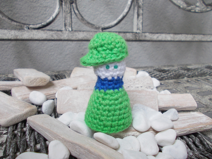 Design and Copyright by lessigfashion, Häkelpuppe "Leroy" mit Basecap (ca. 6 cm) hoch.