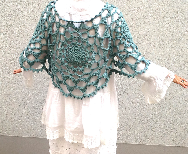 Der schicke Sommerponcho „ Kühle SommerBrise“ ist herrlich über leichte Kleider zu tragen...auch verhüllt er charmant die Oberarme, bei ärmellosen Kleidern und Shirts.....ich benutze hier dickere Baumwolle...er ist recht schnell her zu stellen!