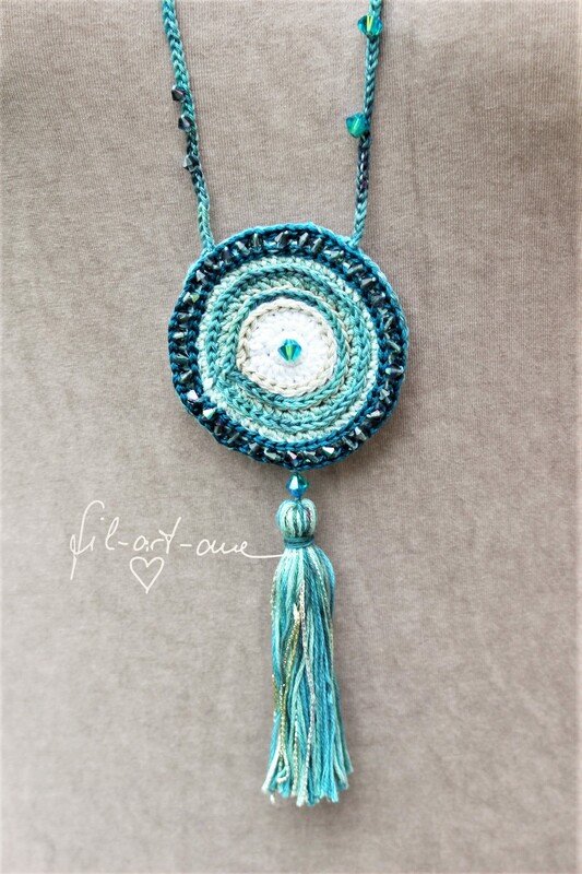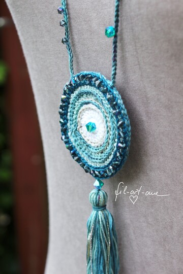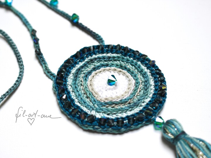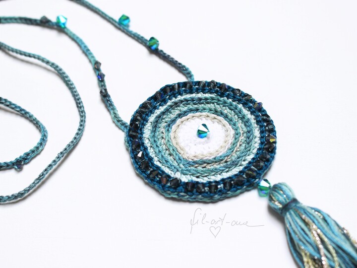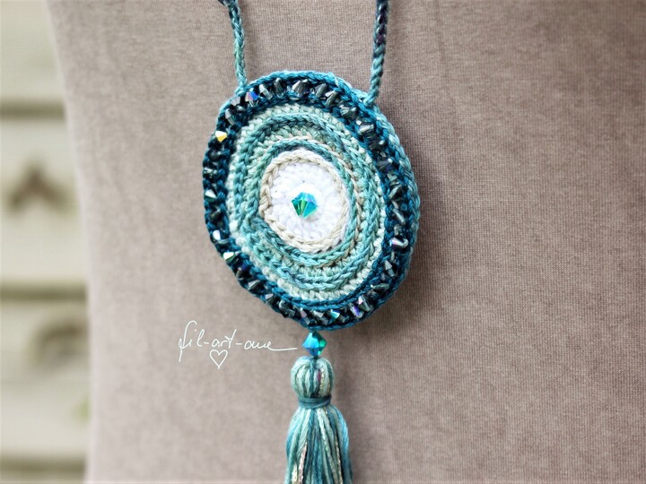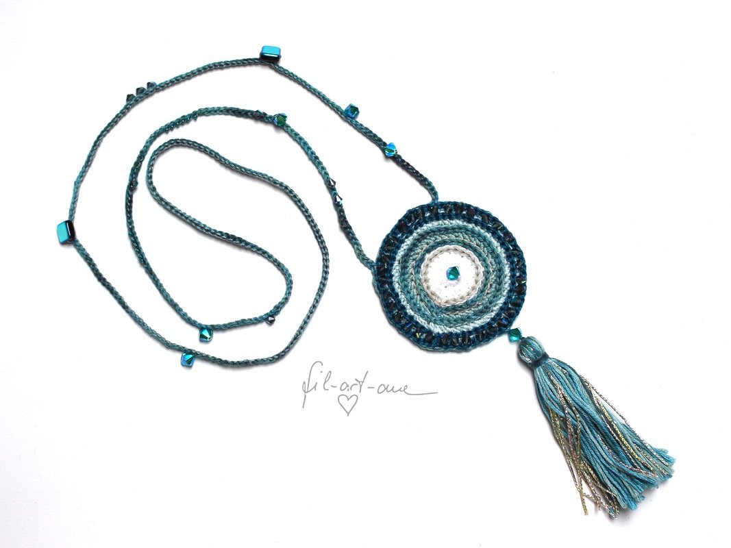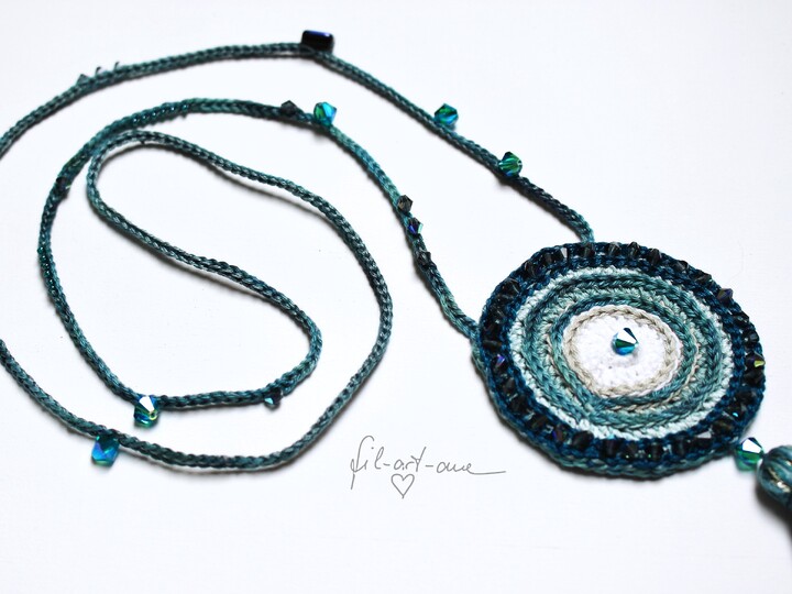 Zu warm für Schals und Tücher? Dann peppe Dein Outfit doch einfach mit einer tollen Kette auf! Lange Boho-Ketten mit Quasten sind vor allem zum Sommer-Outfit immer ein tolles Accessoire und mit dieser handgemachten Kette kannst Du sicher punkten! Wie sie gehäkelt wird, ist in der Anleitung Schritt für Schritt bebildert und ausführlich erklärt.