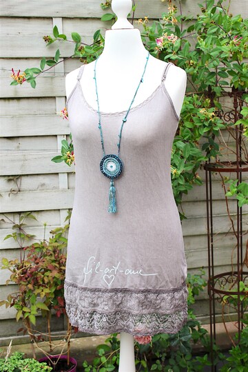 Länge der gesamten Kette inklusive Quaste: Ca. 58 cm, individualisierbar
