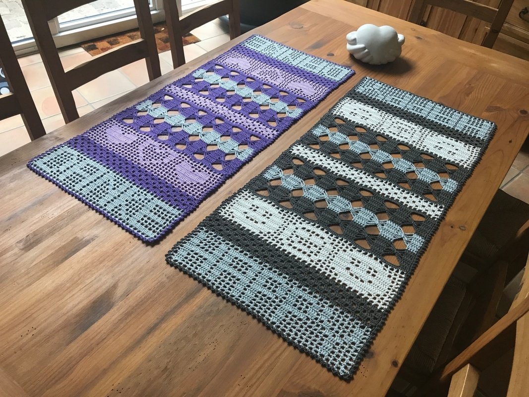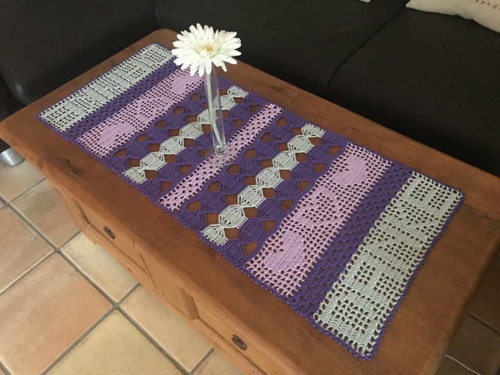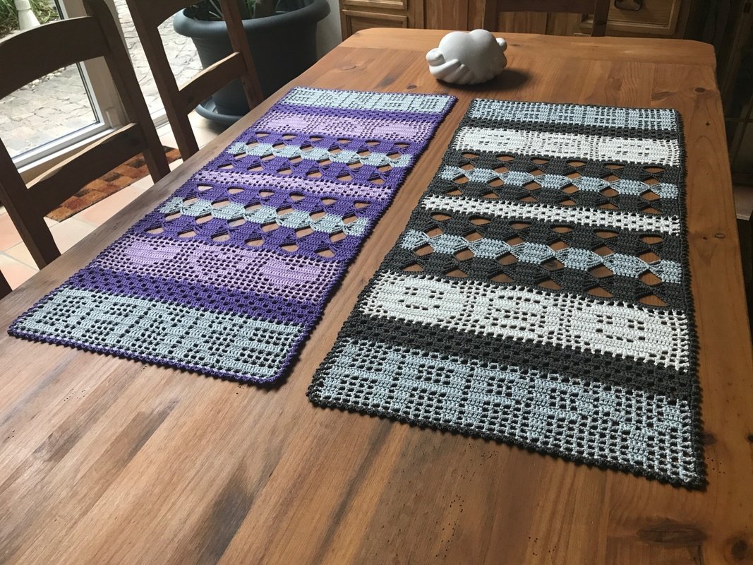 Gehäkelt sind beide Tischläufer mit Schachenmayr Catania Original