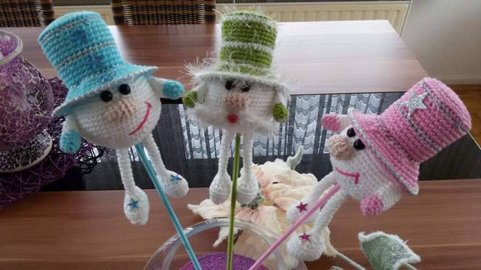 Hiermit verschönert man im Winter jeden Blumentopf oder Blumenstrauß. Die niedlichen Blumenstecker sind Ruck Zuck gehäkelt und auch für Anfänger geeignet. Auch als kleines Geschenk bei einer Weihnachtsfeier machen diese kleinen frechen Blumenstecker eine riesen Freude