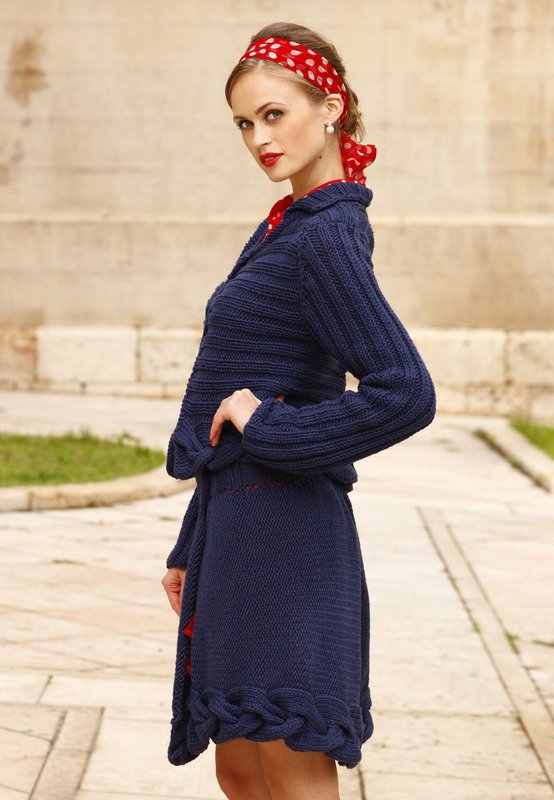 Wie angezogen und chic Strick wirkt, zeigt die quer gestrickte Jacke plus Rock. Schönes Detail: der dekorative Zopf! Damit verleihen Sie jedem Look ein elegantes Vintage-Finish!