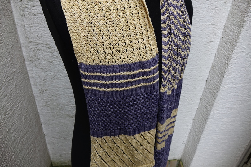 Zu meinem 1jährigen Shopjubiläum wollte ich noch mal was einfaches abwechslungsreiches stricken. Da ich Baumwolle toll finde, habe ich aus der 6 fädigen Baumwolle von Lanartus einen leichten Sommerschal gestrickt.