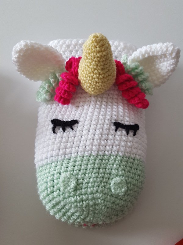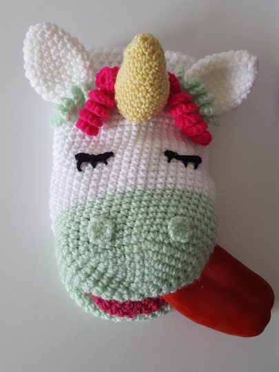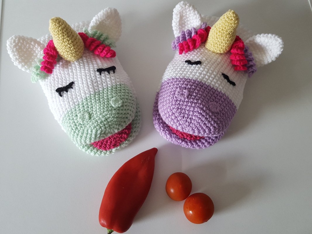 Häkelanleitung Handpuppe oder Topflappen Einhorn