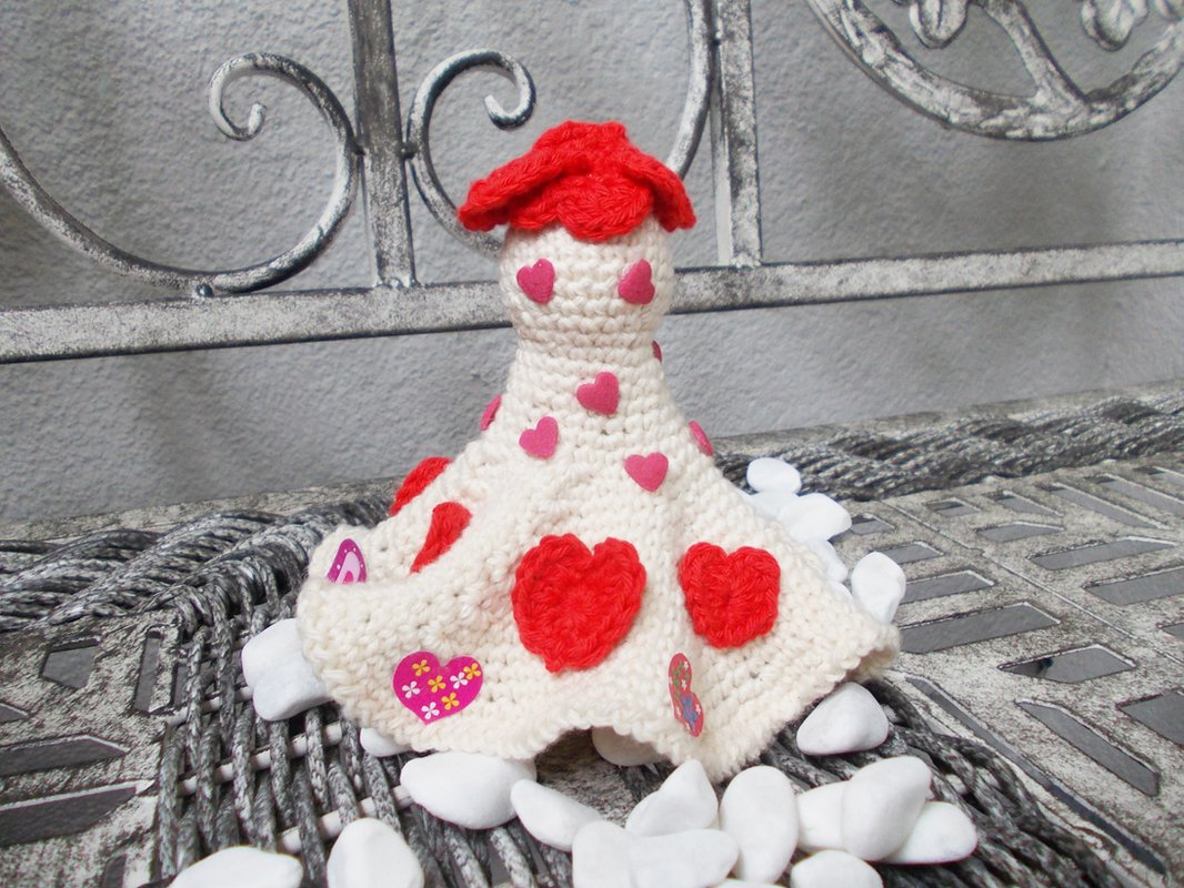 Design and Copyright by lessigfashion, Häkelpuppe "Herzdame", Höhe ca. 10 - 12 cm)