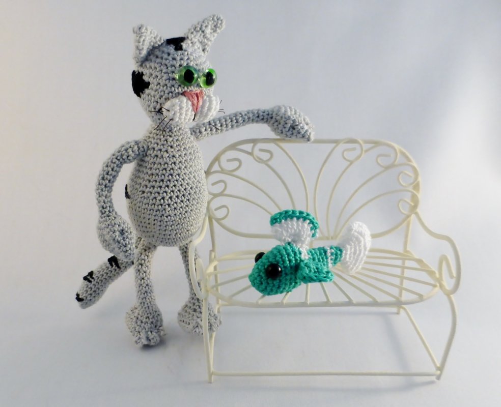 Katze Lilly und Fischli Flippy sind super zum Aufstellen, als Geschenk, als Kuscheltier oder einfach für alle Katzenliebhaber!