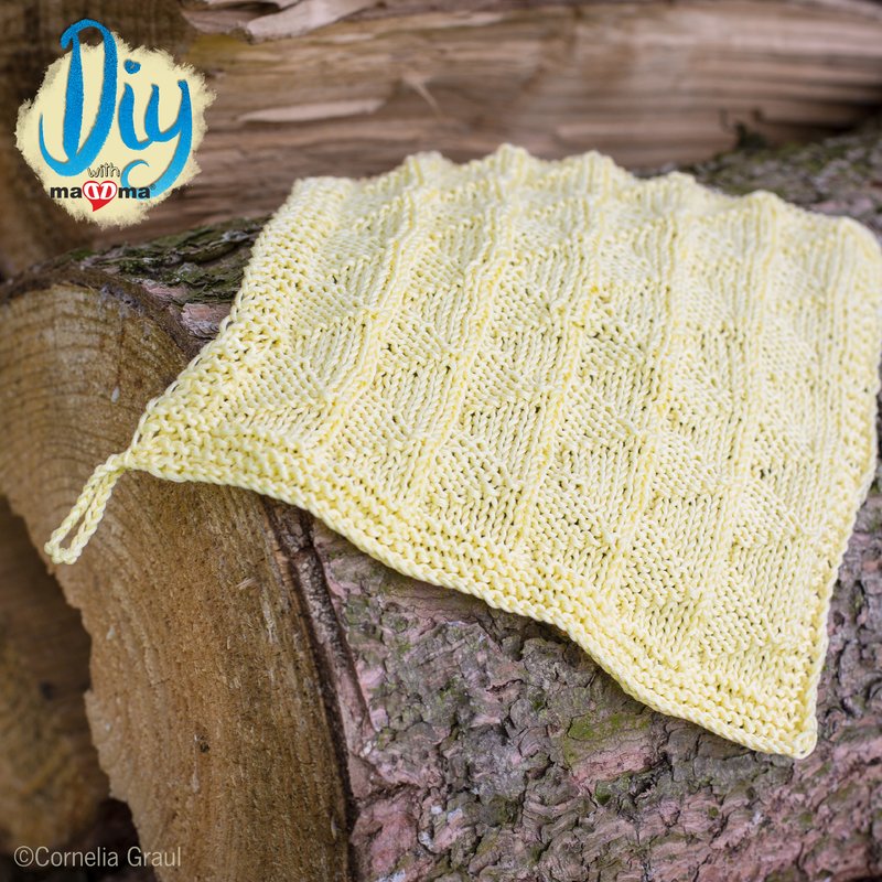 Ist die Zeit und Wolle nicht viel zu schade für ein solch unästhetisches Wegwerfprodukt? Aber man lernt ja nie aus, und ein Muster ausprobieren kann man ja immer mal. Also habe wir uns dieses tolle Rippenmuster ausgesucht, sieht ja schon bisschen aus wie ein Waschbrett- dazu ein tolles saugfähiges Baumwollgarn in pastellgelb. Klapperklapperklapper..und siehe da, ein hübsches Stückchen Maschenwerk, fühlt sich super an, sieht super aus, wischt super und das Spülen macht auf einmal viel mehr Spass!
