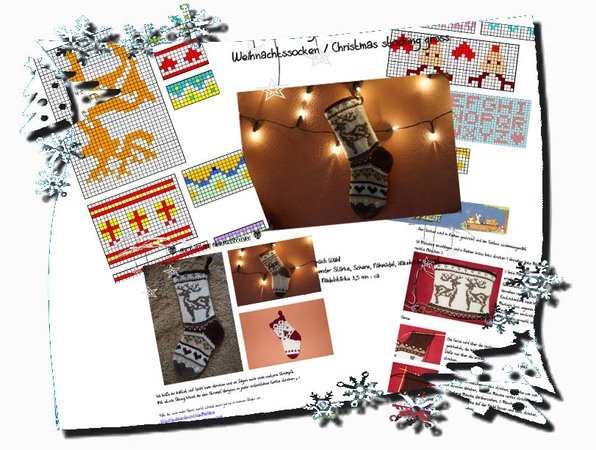 Es ist nicht nur die Anleitung zum einstricken des hübschen Hirsch- Motives enthalten, sondern auch Elche, Eichhörnchen, Geschenke, Tannenbäume, Herzen, Sterne, Schneeflocken und allerhand kleiner Muster ( 3 Seiten mit Einstrickmotiven ). So dass jede Soce ein echtes Unikat nach Euren persönlichen Vorstellungen werden kann.