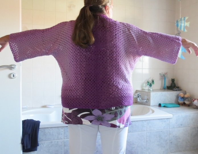 Jedes Teil häkelst du von innen nach außen in einem Stück. Deshalb ist diese Jacke prima geeignet für Häkelneulinge, die sich noch nicht an schwere Muster trauen, aber auch nicht immer nur Tücher und Schals arbeiten wollen.
