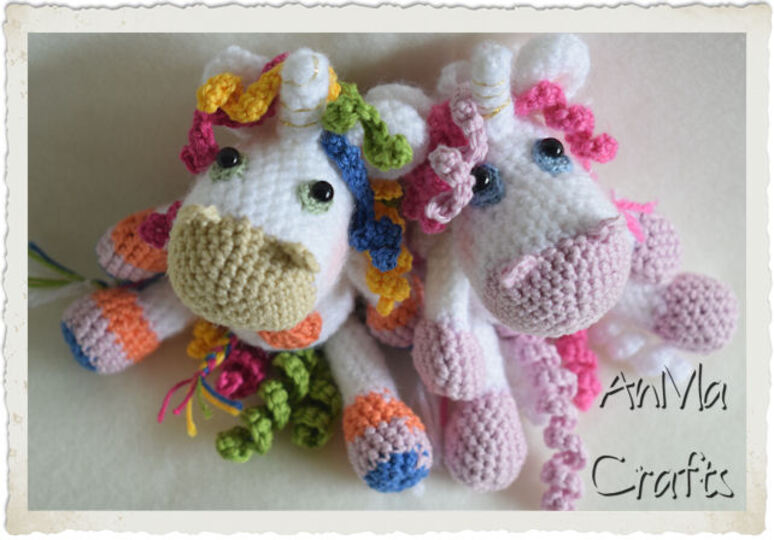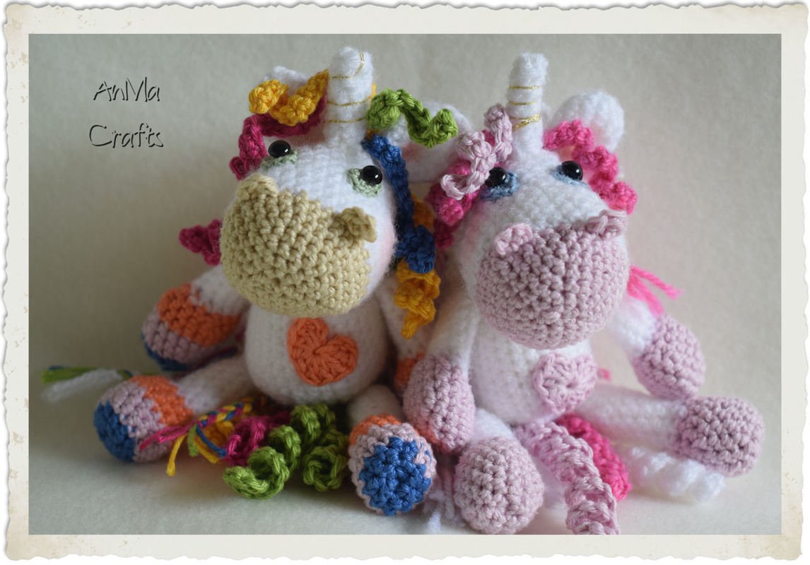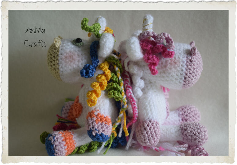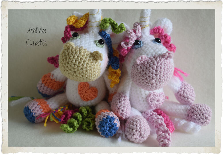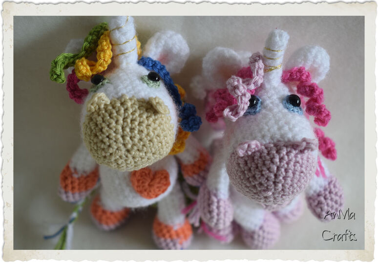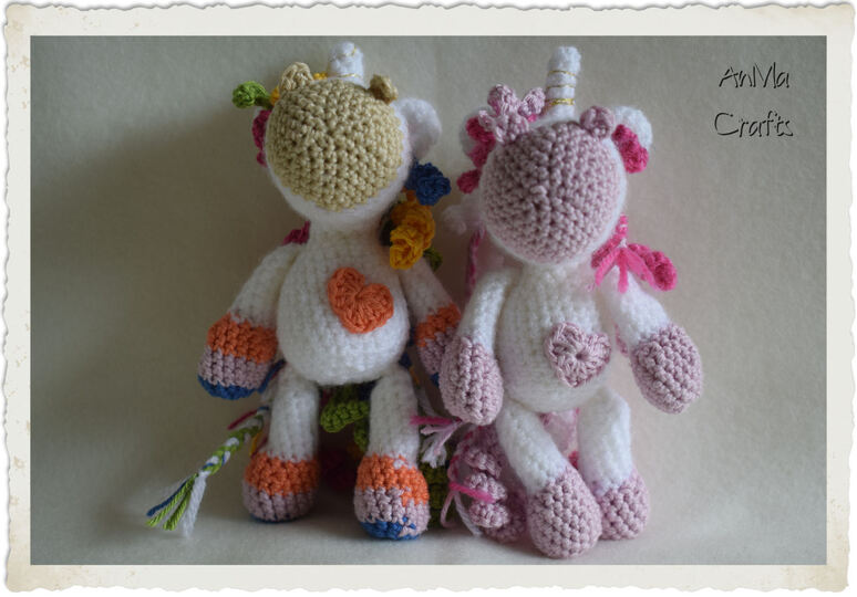 °°° In meiner Anleitung beschreibe ich Schritt für Schritt das Einhorn in Rosa. Für das bunte Einhorn habe ich die Wolle notiert und bei Arm/Bein erklärt, wo welcher Farbwechsel stattfindet mit Bildern.°°°