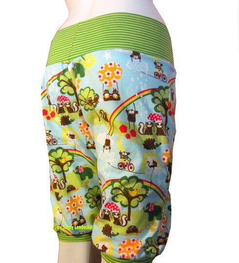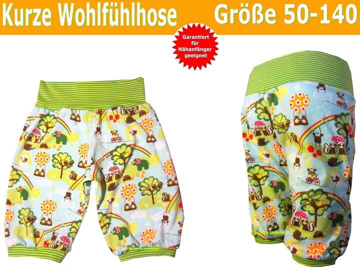 Genäht werden kann diese knielange Kinderhose aus Cord oder Baumwolle, dann ist sie etwas „robuster“ – oder Du nähst sie aus Jersey, dann wird sie Superlässig und ideal zum Toben und Spielen.